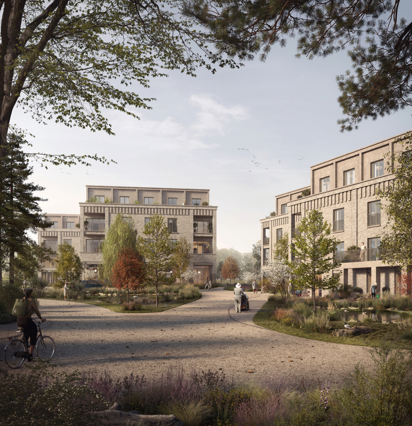 - Enhancing the environment across the site with a reduction in hard surfaces, an increase in natural green spaces, and a better relationship between buildings